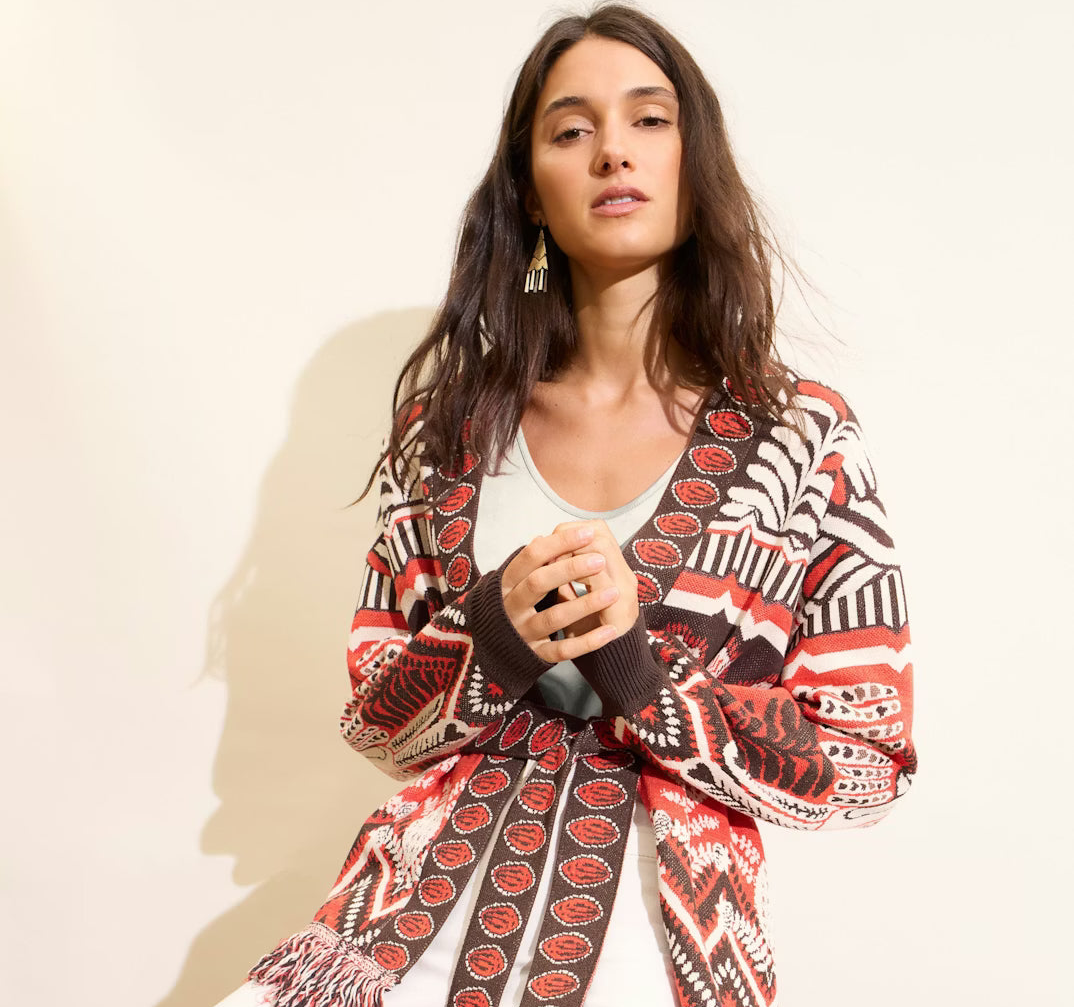 Oui Jaquard Knit Cardigan With Tie