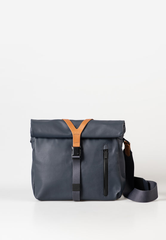 The Seki RE crossbody bag is made from recycled nylon, which is characterized by its robust lightness. The practical roll-top closes with press studs and a buckle, allowing you to increase or decrease the volume of the bag to suit your needs. The strap on the front is made from sustainably tanned premium leather and gives the roll-top bag an unmistakable look. In addition to an organized main compartment with various pockets and a key strap, Seki RE has a zippered pocket on the front and a zippered pocket on the back. An extra shoulder padding makes it comfortable to carry.