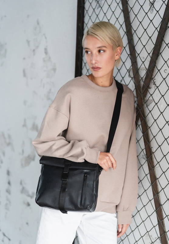 The Seki RE crossbody bag is made from recycled nylon, which is characterized by its robust lightness. The practical roll-top closes with press studs and a buckle, allowing you to increase or decrease the volume of the bag to suit your needs. The strap on the front is made from sustainably tanned premium leather and gives the roll-top bag an unmistakable look. In addition to an organized main compartment with various pockets and a key strap, Seki RE has a zippered pocket on the front and a zippered pocket on the back. An extra shoulder padding makes it comfortable to carry.