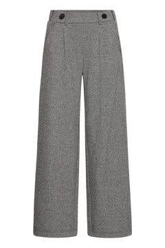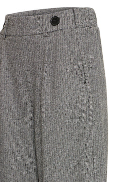 The B.Young Piritta Belt Pants offer a sophisticated blend of comfort and style with a wide waistband featuring button details. Crafted from a soft knitted fabric, they include practical pockets and a single pleat that enhances the wide-leg silhouette, providing elegant movement and a polished appearance suitable for both professional and casual settings.