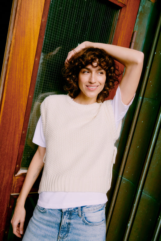 Layer up with the B. Young Nitta Slipover, a chunky knit vest that's equal parts cozy and chic. The adjustable side ties let you cinch the fit to your vibe, making it the perfect piece to throw over anything in your rotation. Whether you're pairing it with a crisp white tee or a fitted long-sleeve, this textured knit adds instant dimension and warmth without the bulk. Your new go-to for effortless, elevated layering.