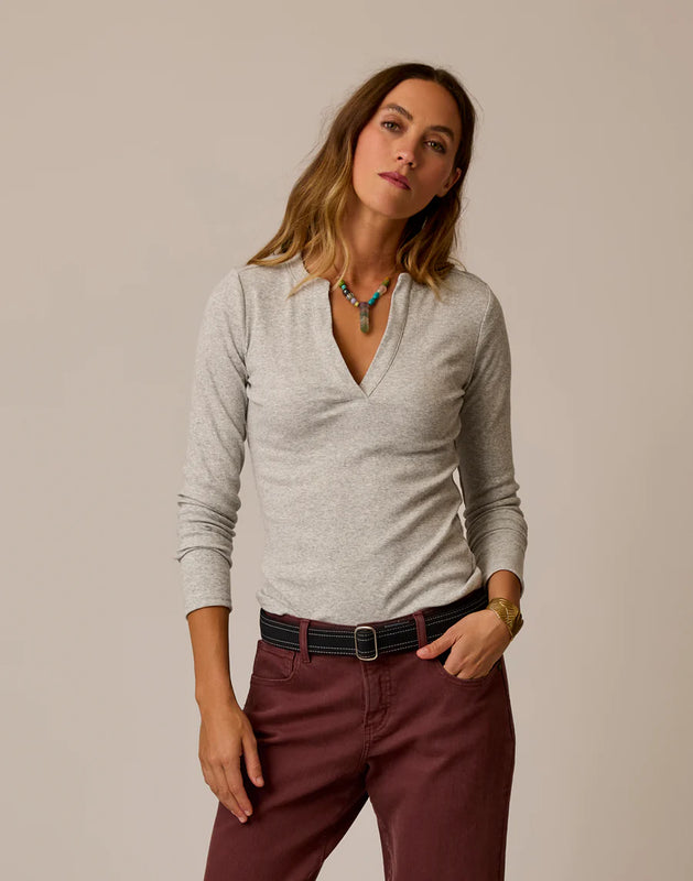 The Ever Henley elevates everyday comfort with thoughtful design and effortless polish. Its open placket neckline adds just the right touch of intrigue, while the fitted silhouette and soft 2x2 rib texture create a flattering, feminine shape. Made from a sustainable blend of organic cotton and recycled polyester, it brings versatility and quality to your beach-inspired wardrobe — perfect from morning surf checks to sunset strolls.