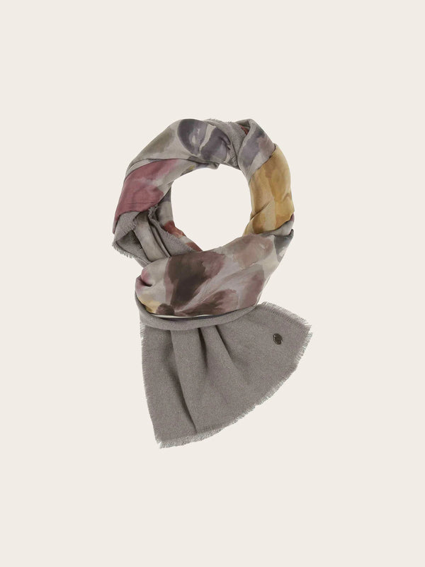 This elegant Fraas patchwork stole is special. The elegant silk scarf with a floral pattern is sewn onto a plain-colored stole. This combination makes the XL scarf a versatile and stylish companion. Whether wrapped around the neck or elegantly draped over the shoulders, this accessory is perfect for any occasion. A must-have for your elegant look!