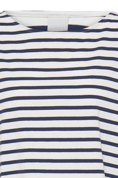 Striped long sleeve shirt with a straight fit, featuring a boat neck. Horizontal stripes add visual interest and effortless edge.