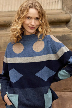 Mansted Pop Graphic Colour Block Wool Cardigan