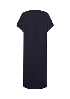 The Banu Dress is crafted from 48% Modal, 48% Polyester, 4% Elastane. It features a V-neck and short sleeves with a smooth texture. Pair it with sneakers for a casual look or with heels for an elegant touch.